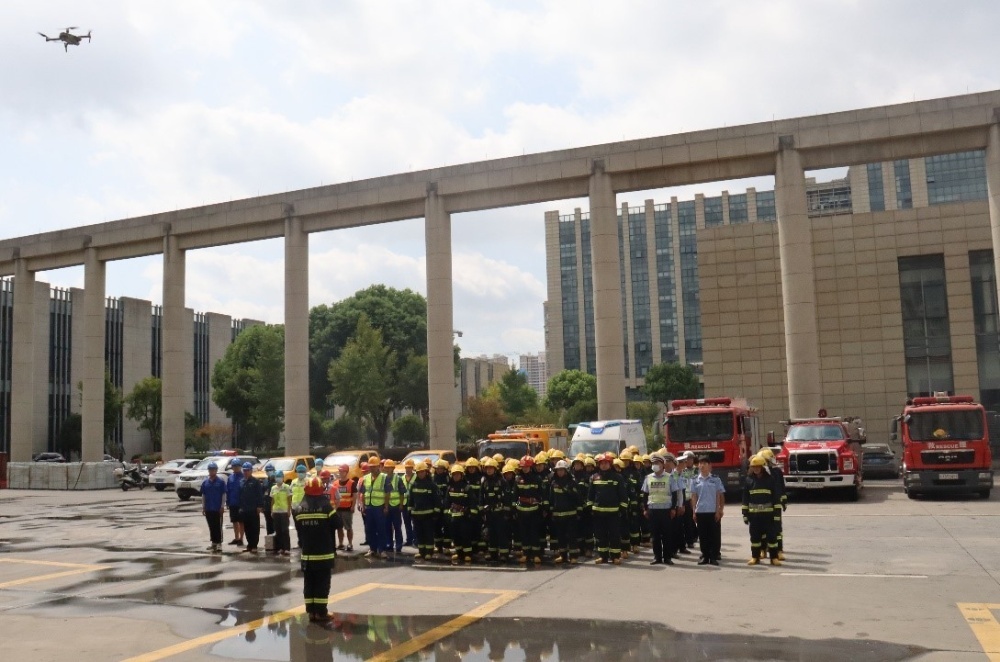 本次演习模拟场景为公司1号楼原料仓库发生火灾,消防控制室确认火情,启动应急预案,微型消防站接到火警,第一时间到达现场组织人员疏散,进行初期火的扑救,因火势蔓延较快,公司应急救援人员、微型消防站无法控制火势,请求外部支援。随后消防、公安、交通等应急救援部门到达现场,公司应急救援人员向消防救援大队介绍了火灾的基本情况后,将现场指挥权交由消防救援大队指挥长。各方救援和应急人员在指挥长的指挥下,按演习方案有条不紊地实施相应的应急响应行动,直至完成全部演习步骤。