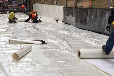 ZMC交叉复合膜的典型应用领域是防水卷材行业,可作为芯层支撑材料生产双面沥青防水卷材,也可作为表层生产单面沥青防水卷材。用ZMC交叉复合膜生产的防水卷材,具有铺贴性好、平整度好及不易翘起卷曲的优点。