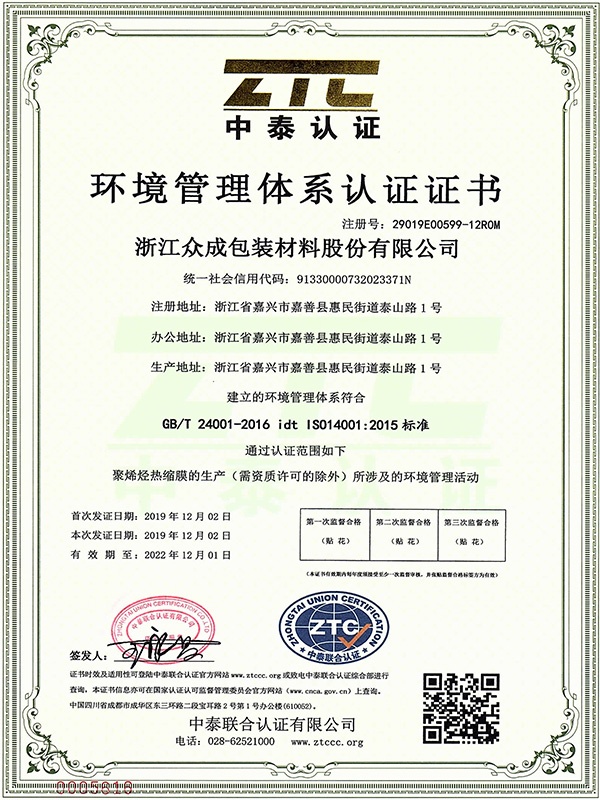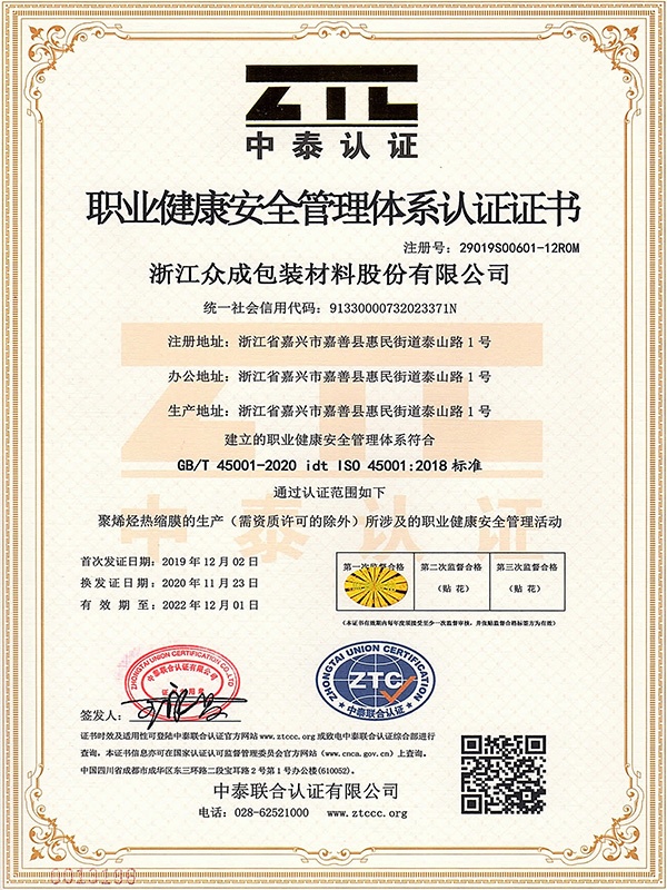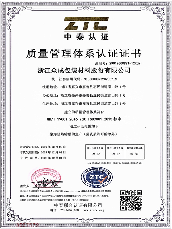 浙江众成包装材料股份有限公司成立于2001年,是一家集科研、设计、生产、销售及售后服务于一体的全过程制造企业,是全球知名的高品质POF热收缩膜制造商和POF热收缩膜整体包装解决方案提供商。